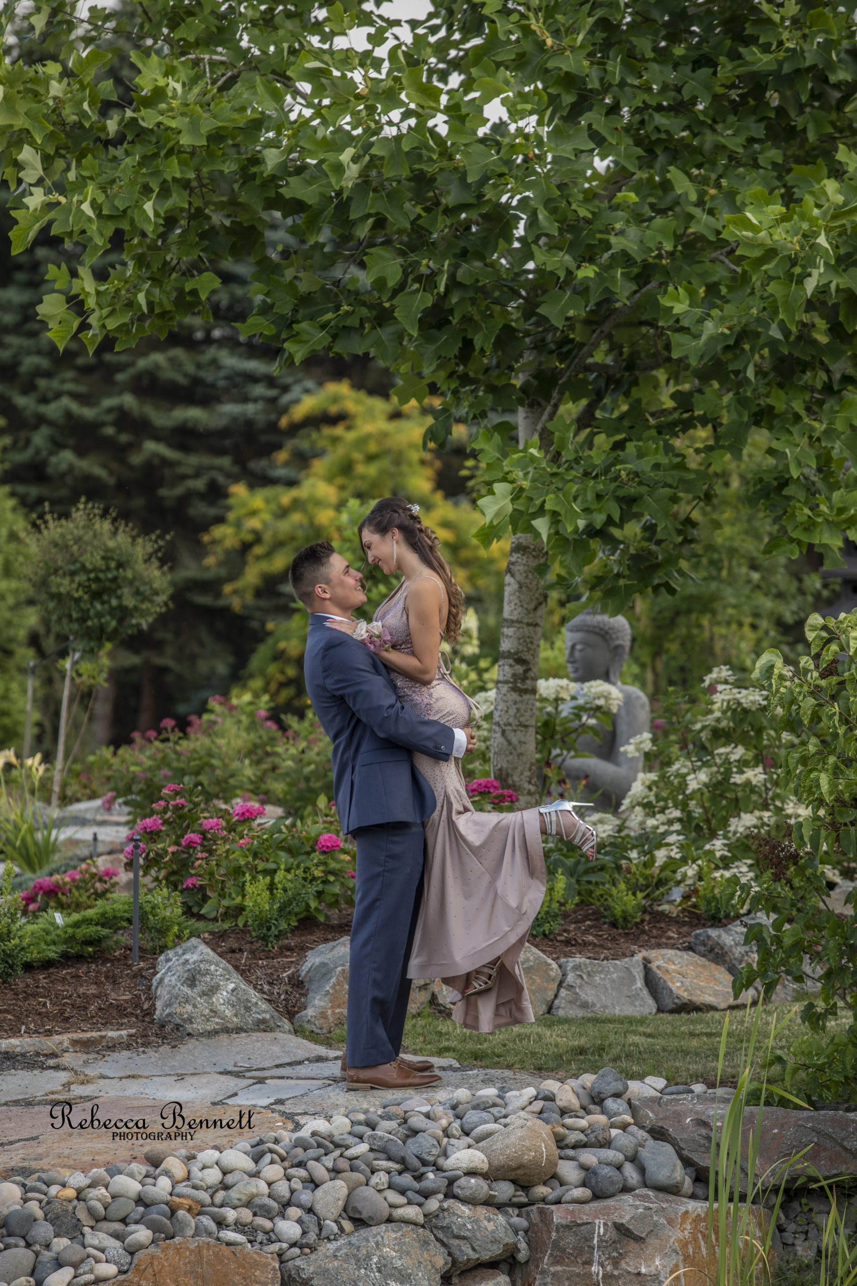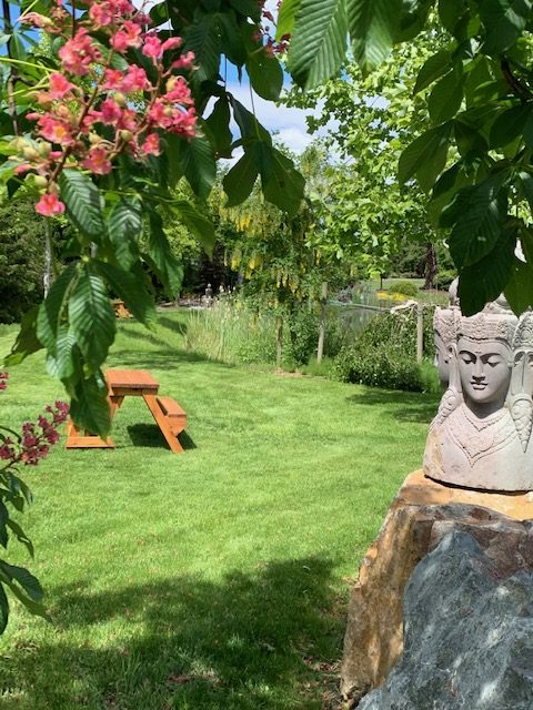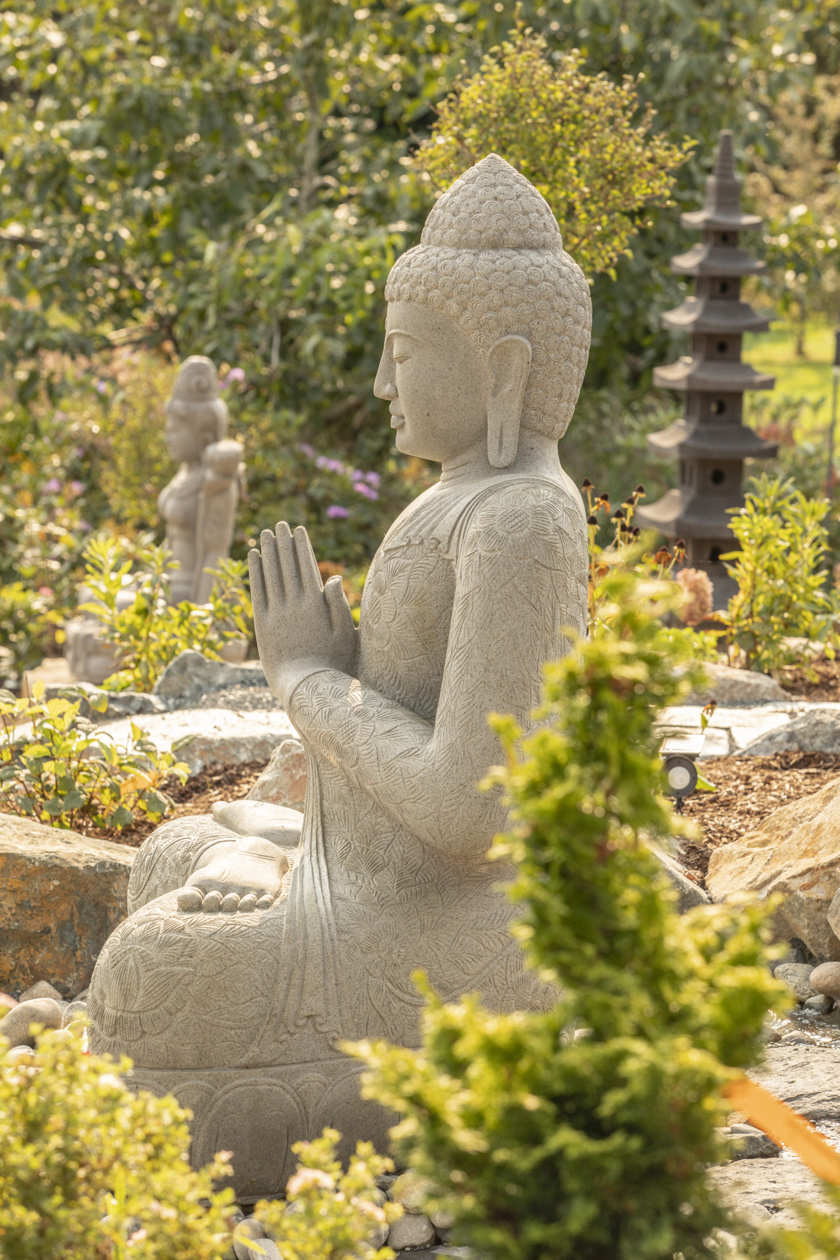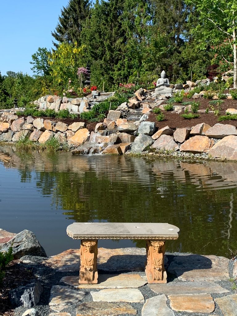 - Asian meditation gardens with a variety of hardscaping (rocks) and statuary
